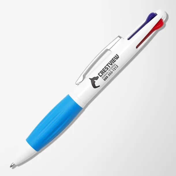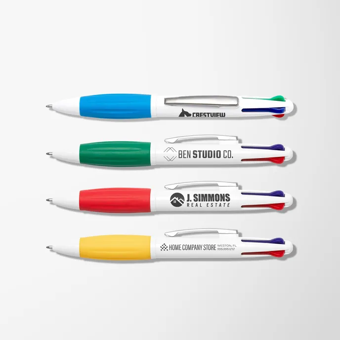 Bolígrafo con sistema retráctil que incluye varios colores en un solo instrumento. Permite cambiar de tinta fácilmente, facilitando la organización de notas, esquemas y documentos. Su diseño compacto lo convierte en una opción práctica para el día a día.